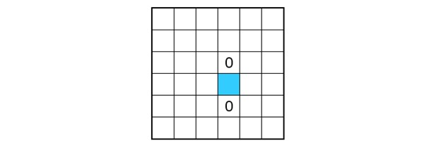 Because at most two equal numbers immediately next to or below each other are allowed, pairs can be supplemented with the other number. So, in the example below, both blue boxes should contain a zero.
