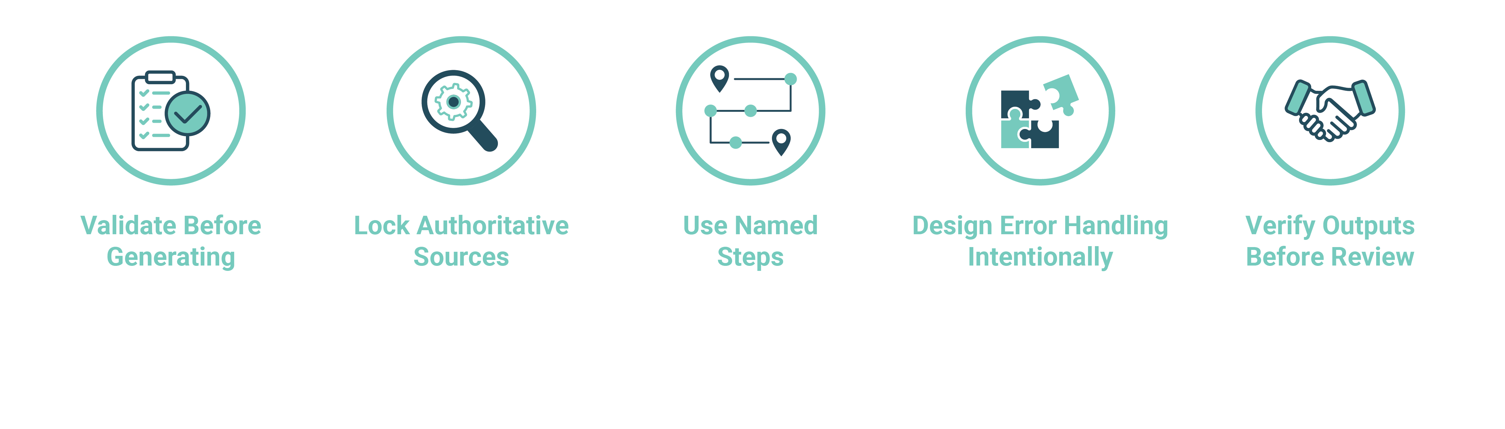 Nothing enforces order. Nothing confirms the correct data was used. Errors tend to surface only after the document is complete.